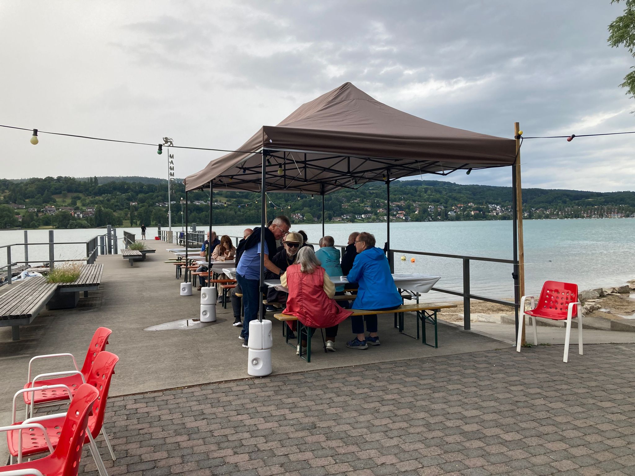 Zu unserer Freude sind unsere Vereinsmitglieder, Gäste und Besucher in zahlreicher Menge am See erschienen. Punkt 19 Uhr trafen die ersten Gäste mit Durst und Hunger ein. An der Bar wurden sie fleissig mit Sommerdrinks versorgt. So war zum Beispiel die saisonale Erdbeerbowle mit oder ohne Alkohol innert kürzester Zeit ausverkauft.